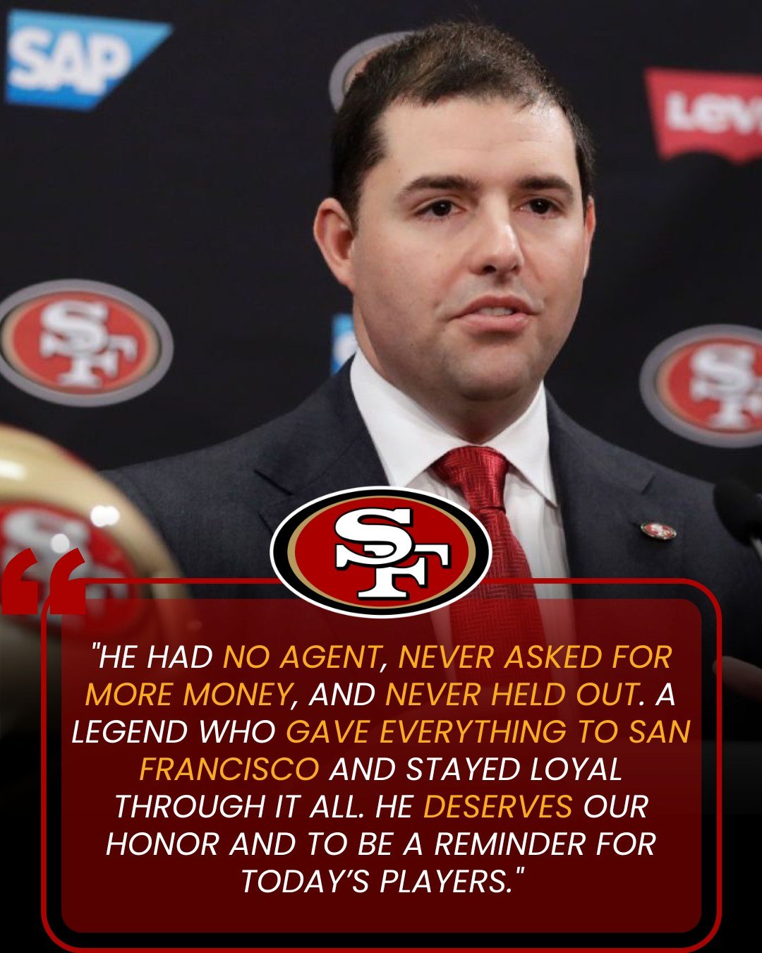 “He had no agent, never asked for more money, and never held out. A legend who gave everything to San Francisco and stayed loyal through it all. He deserves our honor and to be a reminder for today’s players.” — Jed York