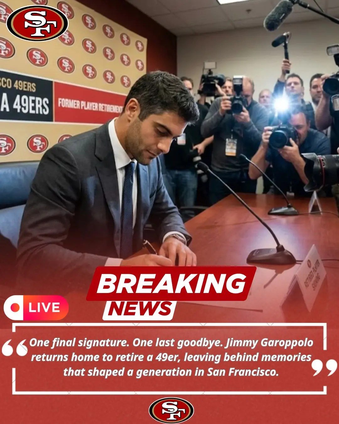 Jimmy Garoppolo signed a one-day contract with San Francisco to retire at age 34, closing the book on a career that flourished in the Bay and delivering an emotional farewell to 49ers fans.