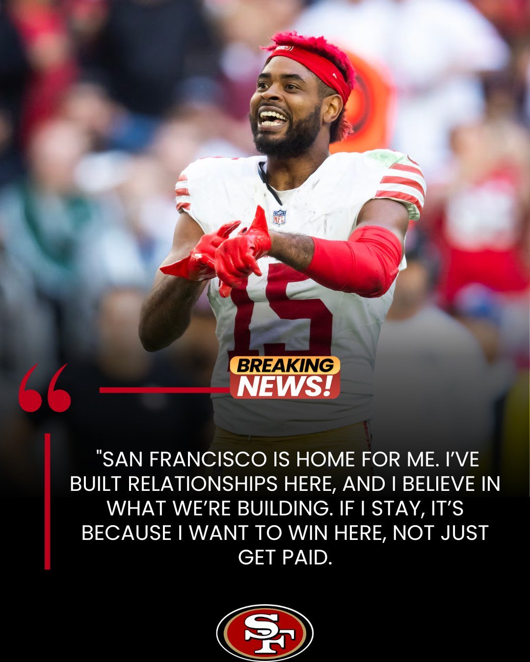 “San Francisco is home for me. Iβve built relationships here, and I believe in what weβre building. If I stay, itβs because I want to win here, not just get paid. But I also know my value, and if I hit the market, I expect to be compensated like a top receiver.”