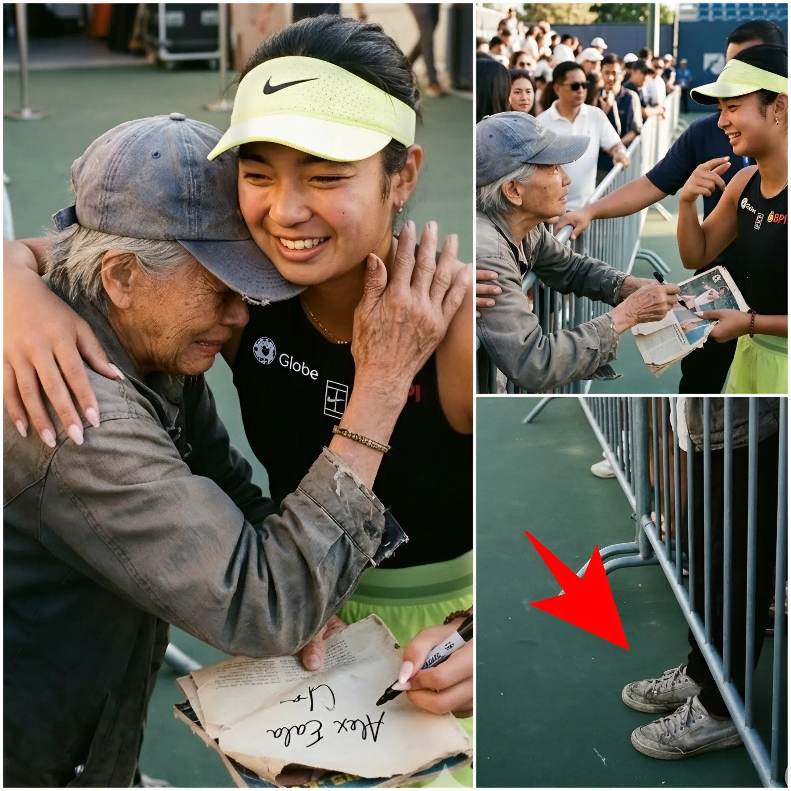The security team tensed as a woman in tattered sneakers and a sun-bleached cap pushed through the crowd. She clutched a crumpled sheet of paper, eyes locked on the tennis star. Alexandra Eala, fresh from a grueling practice session, was waving to fans at the WTA event in Manila. Guards moved to block her path, hands already reaching for the woman’s arm.